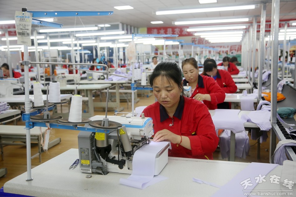 (在服裝加工扶貧車(chē)間開(kāi)展考察交流活動(dòng))