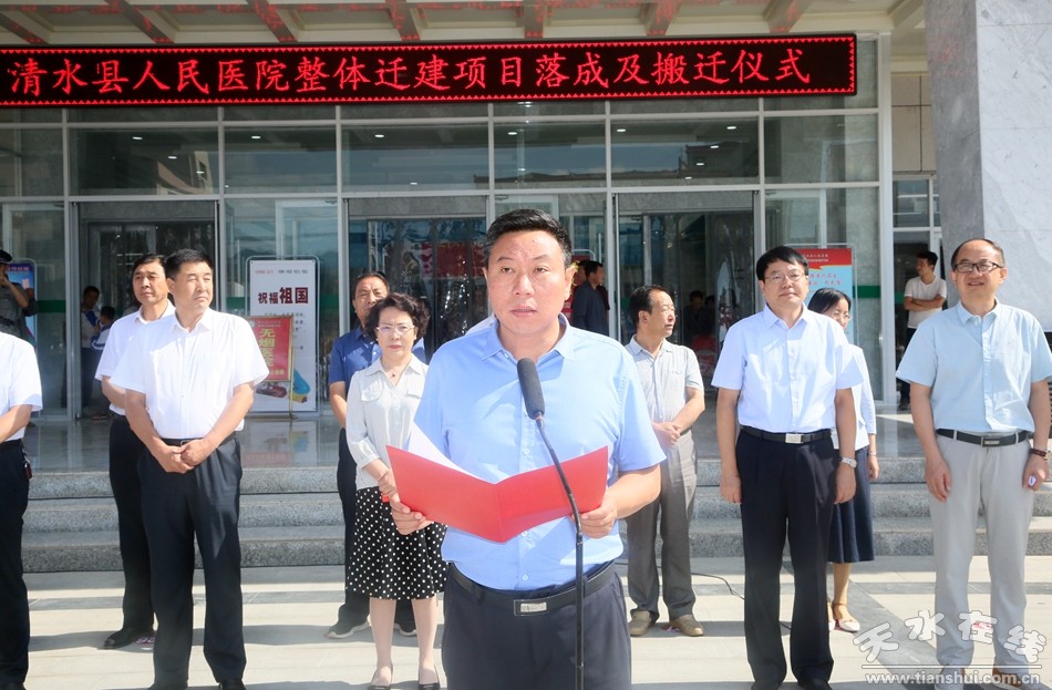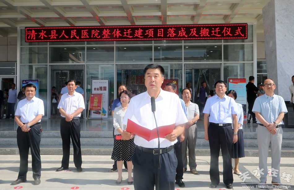 天津市河北區(qū)衛(wèi)健委、天津市第一醫(yī)院、天津市第二醫(yī)院、有關(guān)負(fù)責(zé)人,天水市衛(wèi)健委、市內(nèi)各大醫(yī)院及市內(nèi)兄弟縣區(qū)人民醫(yī)院負(fù)責(zé)人受邀出席搬遷儀式。清水縣四大組織全體在家領(lǐng)導(dǎo)出席搬遷儀式。