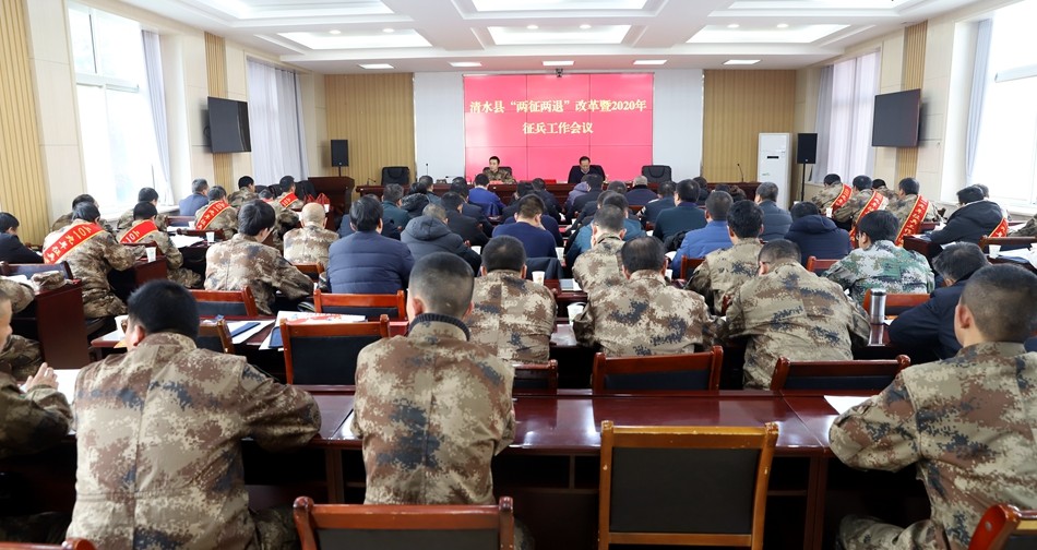 1月16日,清水縣召開(kāi)“兩征兩退”改革暨2020年春季征兵工作會(huì)議?h委常委、副縣長(zhǎng)秦永斌,縣武裝部部長(zhǎng)賈斌,縣征兵領(lǐng)導(dǎo)小組辦公室成員單位分管領(lǐng)導(dǎo)、18鄉(xiāng)鎮(zhèn)黨委書記參加了會(huì)議。