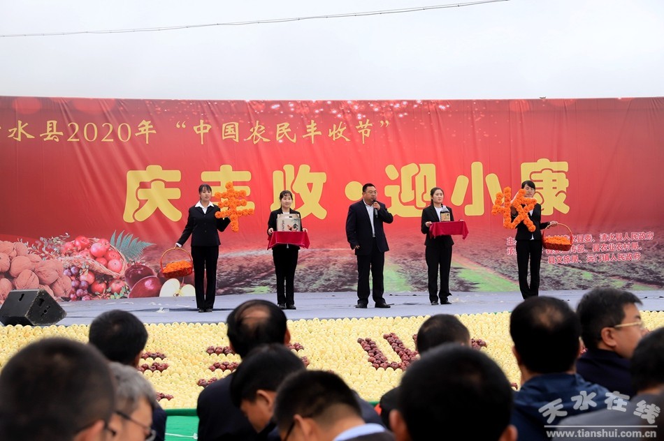 今年是全面建成小康社會(huì)目標(biāo)實(shí)現(xiàn)之年,是全面打贏脫貧攻堅(jiān)戰(zhàn)收官之年。9月22日,清水縣在遠(yuǎn)門鎮(zhèn)夜明灣蘋果基地舉行以“慶豐收、迎小康”為主題的2020年中國(guó)農(nóng)民豐收節(jié)慶;顒(dòng),分享農(nóng)民朋友們豐收的喜悅,展現(xiàn)脫貧攻堅(jiān)的精彩成果和新時(shí)代廣大農(nóng)民群眾的時(shí)代風(fēng)采,共話全面小康美好生活。