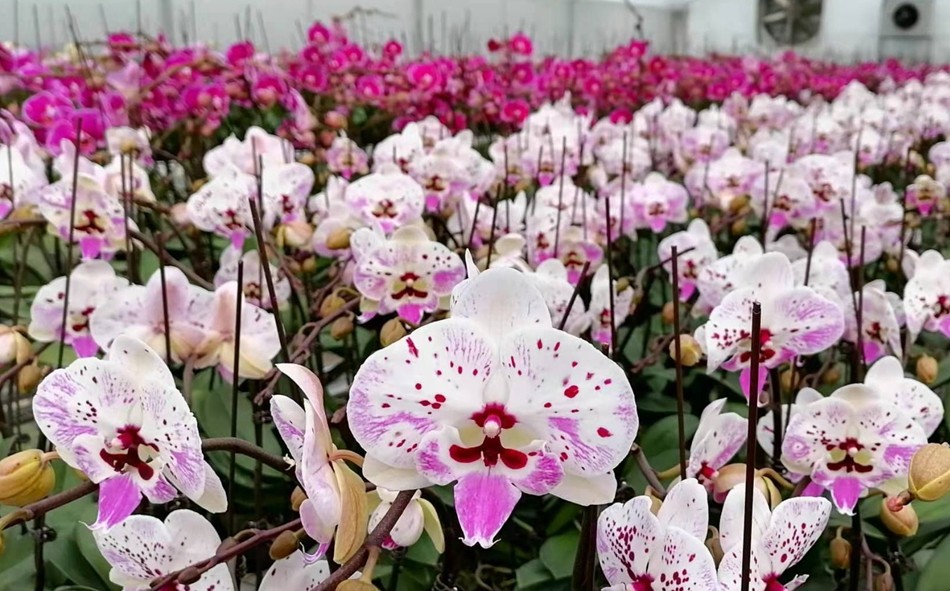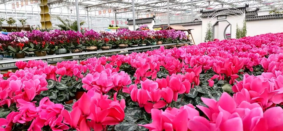 深冬時節(jié),萬物含藏,山野田園籠罩在一片冰天雪地之中,而在清水縣花卉產(chǎn)業(yè)園內(nèi),卻是鮮花怒放,姹紫嫣紅,一派生機勃勃景象。走進花卉種植大棚內(nèi),蝴蝶蘭、仙客來等80多種花開正濃,紅的像火,粉的如霞,白的似雪,美不勝收。