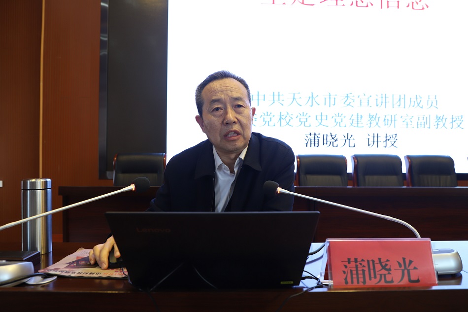 在政治輪訓班上,邀請中共天水市委黨校黨史教研室副教授、市委宣講團成員蒲曉光報告旁征博引、深入淺出地講述了中國共產(chǎn)黨近百年的奮斗歷程和主要成就,全面系統(tǒng)的介紹了黨領導陜西新民主主義革命的奮斗歷程與寶貴經(jīng)驗,讓參會人員深刻地認識到近百年的中共黨史就是中國共產(chǎn)黨人守初心、擔使命的奮斗史,就是中國共產(chǎn)黨人走過苦難、走向輝煌的奮進史。