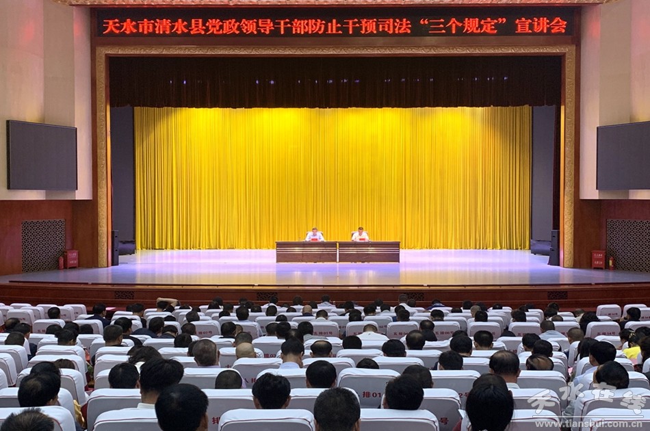 為深入貫徹落實(shí)習(xí)近平法治思想,進(jìn)一步深化黨員干部對(duì)“三個(gè)規(guī)定”的認(rèn)識(shí),樹立依法依規(guī)辦事和保障公平正義鮮明導(dǎo)向,推動(dòng)政法隊(duì)伍教育整頓走深走實(shí),6月9日,清水縣黨政領(lǐng)導(dǎo)干部防止干預(yù)司法“三個(gè)規(guī)定”宣講會(huì)在軒轅大劇院召開,宣教口、農(nóng)口各單位及六鄉(xiāng)鎮(zhèn)副科級(jí)以上干部280余人參加培訓(xùn)。