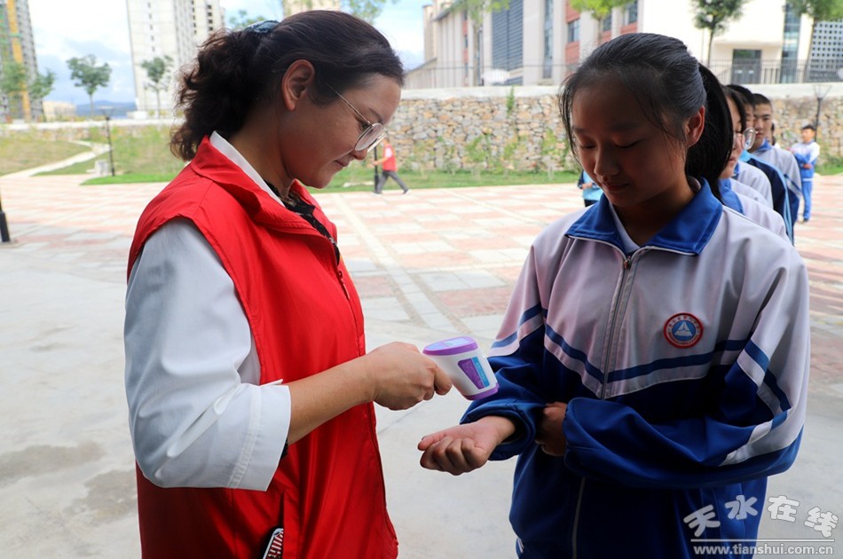 “戴好口罩、測(cè)量體溫、體溫正常才可進(jìn)入學(xué)!薄9月1日,在清水縣第八中學(xué)門口記者看到,學(xué)生們整齊有序地從指定通道進(jìn)入學(xué)校,寂靜一整個(gè)暑假的校園,正因同學(xué)們的回歸而變得生機(jī)勃勃。據(jù)了解,這僅是第八中學(xué)把好疫情防控關(guān)的第一道防線。