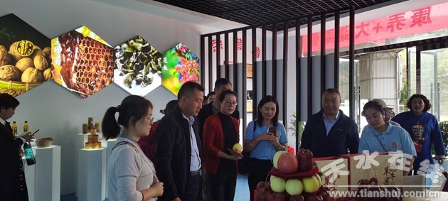 隨后,一行人參觀了清水縣鑫果種植農(nóng)民專業(yè)合作社聯(lián)合社電商商品展廳,由聯(lián)合社電商負責人金文麗為在場的所有人介紹網(wǎng)絡(luò)銷售情況,聯(lián)合社發(fā)展情況。