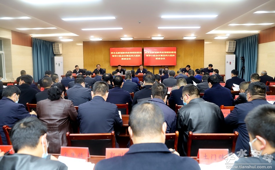 10月21日晚,清水縣委書記馬越垠主持召開新冠肺炎疫情聯(lián)防聯(lián)控領導小組會議暨四大組織聯(lián)席會議,對當前疫情防控工作進行再安排再部署,動員全縣上下進一步統(tǒng)一思想、凝聚共識、明確要求、迅速行動,全面落實各項防控措施,織密織牢疫情防控網(wǎng),全力保障人民群眾生命安全和身體健康。