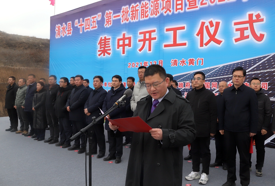 縣委常委、副縣長宋賢雄主持開工儀式;副縣長郭冠亞介紹了清水縣“十四五”第一批新能源項目暨2022年配農(nóng)網(wǎng)示范縣工程項目情況 ,各項目建設(shè)單位負責(zé)人分別作了表態(tài)發(fā)言。