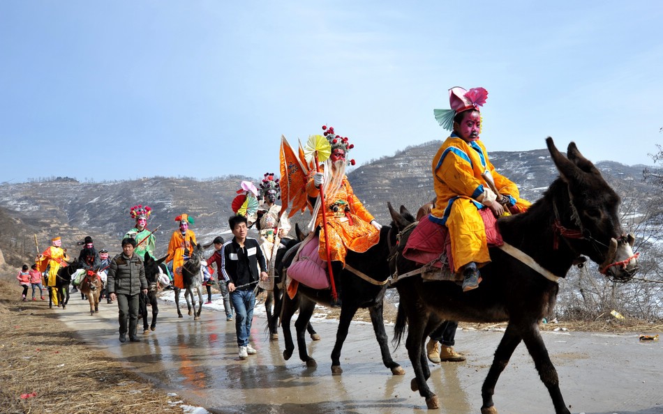 “上九”這天,年輕的小伙子們聚在清水農(nóng)村的大街小巷,等待化妝、裝扮彩車,參加社火表演的鑼鼓隊(duì)、馬社火、高蹺隊(duì)、舞獅隊(duì)、彩車隊(duì)、劃旱船、民間小曲等各式各樣的社火早已在村鎮(zhèn)口集結(jié)。馬路兩旁,等待觀看表演的群眾已站得密密麻麻。喧天的鑼鼓,震耳的鞭炮,新穎別致的造型,濃墨重彩的臉譜,摩肩擦踵的人流,將鄉(xiāng)村街道渲染得年味十足、喜慶祥和,為群眾們勾畫出了一個(gè)美好的新年。