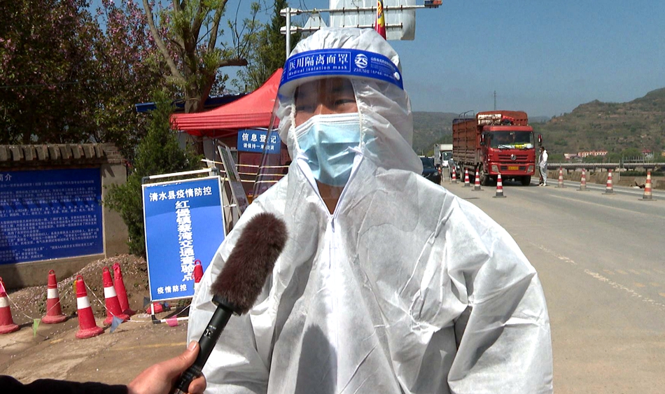 “這里是清水縣蔡灣卡點,目前主要承擔來清返清人員的初步管控。初步管控分為三種:第一種是正常通行,是對應天水市內(nèi)、本人持有48小時核酸證明的,如果是市外省內(nèi)的人員,需持有14小時核酸證明,就可以在卡點正常通行。如果是省外來清返清人員,一律留觀3天;如果是中高風險區(qū)、有疫情發(fā)生的地區(qū),落實非必要不返清政策,如確需返清的,需要在當?shù)剜l(xiāng)鎮(zhèn)政府或社區(qū)報備,并需落實14天集中隔離,7天居家健康監(jiān)測,待監(jiān)測結(jié)果正常則可正;顒印qR上臨近五·一,對于有出行計劃的朋友,建議非必要不要出行,也不要聚集,做好自身防護和安全工作才是重中之重。”清水縣交通局蔡灣卡點執(zhí)勤人員金棟說。