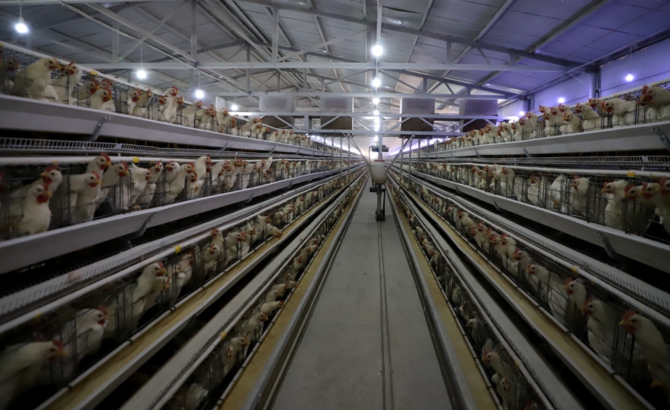 走進(jìn)鳴天下禽業(yè)責(zé)任有限公司的雞舍內(nèi),猶如進(jìn)入一個干凈整潔的現(xiàn)代化車間,雞舍內(nèi)網(wǎng)格式的雞籠層疊排列,每排都安裝了食槽和水管,滾動式撿蛋傳送帶分布在雞籠一側(cè),一個個新鮮的雞蛋通過自動撿蛋裝置,傳送到撿蛋人的手中。養(yǎng)雞廠內(nèi),無論是雞舍還是操作間,都保持著干凈整潔、空氣通暢的干燥環(huán)境,沒有任何難聞氣味。