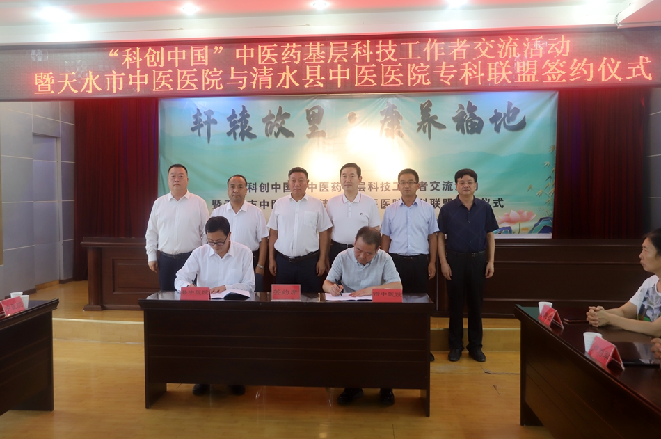 8月24日下午,“科創(chuàng)中國”中醫(yī)藥基層科技工作者交流活動暨天水市中醫(yī)醫(yī)院與清水縣中醫(yī)醫(yī)院專科聯(lián)盟簽約儀式在清水縣中醫(yī)醫(yī)院舉行,清水縣委書記馬越垠與天水市中醫(yī)醫(yī)院院長曹寶國共同為“內(nèi)分泌專科聯(lián)盟”揭牌。