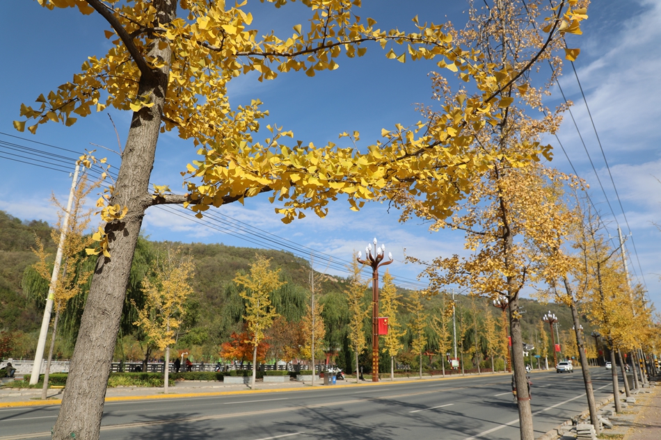 在軒轅大道兩側(cè),一株株銀杏樹格外引人注目。蘇東坡愛銀杏,曾寫道:四壁峰山,滿目清秀如畫;一樹擎天,圈圈點點文章。每年秋末冬初,黃燦燦的銀杏葉在陽光映照下,猶如千扇同舞,吸引了各地游客前來觀賞。