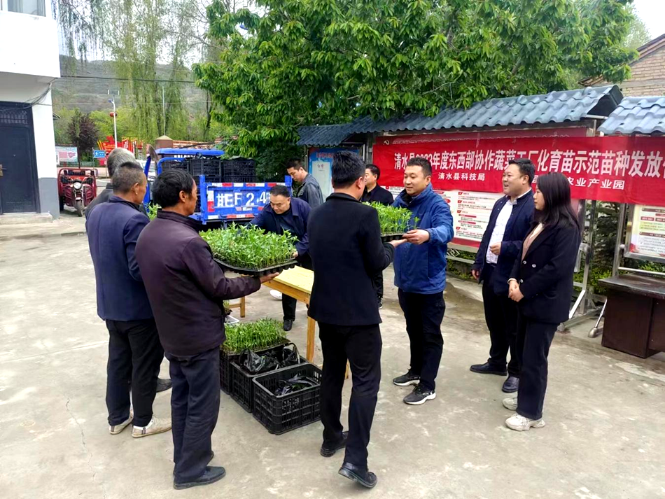 5月8日至10日,清水縣科技局聯(lián)合農業(yè)園區(qū)向金集鎮(zhèn)瓦寨村、槐樹村、松樹鎮(zhèn)松樹村、白沙鎮(zhèn)馬溝村、元坪村、桑園村群眾及農業(yè)合作社免費發(fā)放蔬菜新品種種苗80萬株,其中辣椒苗52萬株,品種為航椒12號;西紅柿苗18萬株,品種為津粉809;茄子10萬株,品種為蘭雜2號。讓廣大群眾切實感受到了東西部協(xié)作項目帶來的好處和實惠,同時也進一步加快了我縣農業(yè)新品種引育繁推和科技創(chuàng)新成果應用步伐。