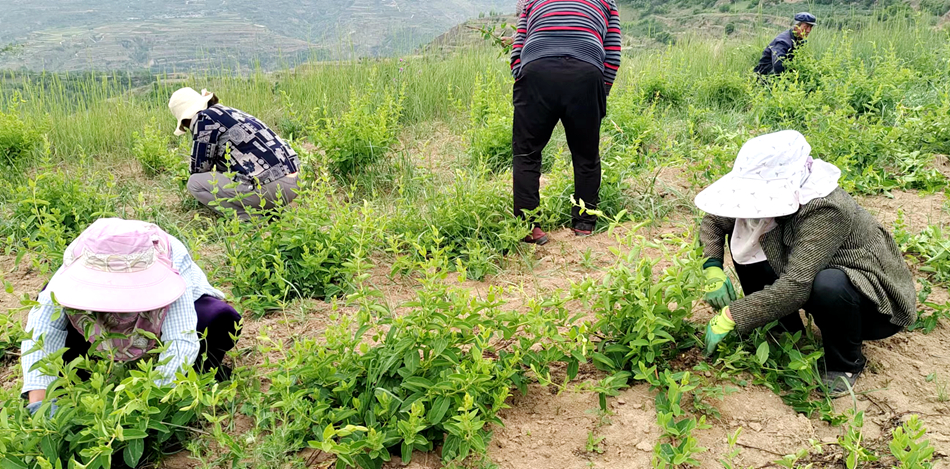 時下,正是金銀花管護(hù)的關(guān)鍵時期,在郭川鎮(zhèn)馬蹄下田堡梁金銀花種植基地,村民們正在進(jìn)行田間管護(hù),修剪金銀花纖細(xì)枝、弱枝、交叉枝,截短當(dāng)年生枝條,以利于第二年促發(fā)新枝,多開花。放眼望去,整片金銀花綠意正濃,生機(jī)盎然。