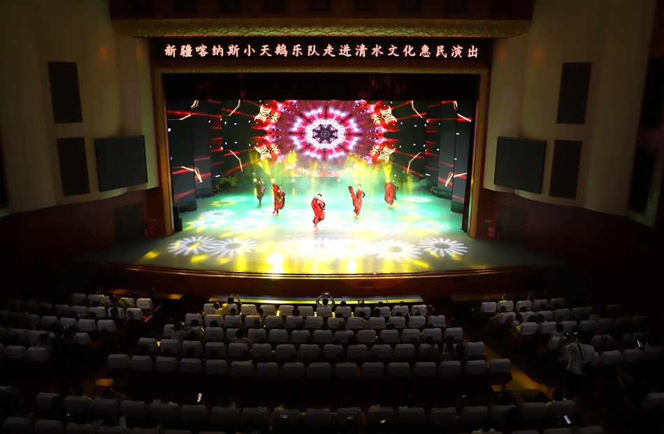 6月26日晚,新疆喀納斯小天鵝樂(lè)隊(duì)走進(jìn)清水縣文化惠民演出在軒轅大劇院濃情上演,小天鵝樂(lè)隊(duì)演職人員用民族音樂(lè)和民族舞蹈為清水縣軒轅文化旅游節(jié)助力添彩,助力“文藝潤(rùn)心”康養(yǎng)品牌打造。清水縣四大組織在家領(lǐng)導(dǎo)和城鄉(xiāng)群眾一同觀看了演出。