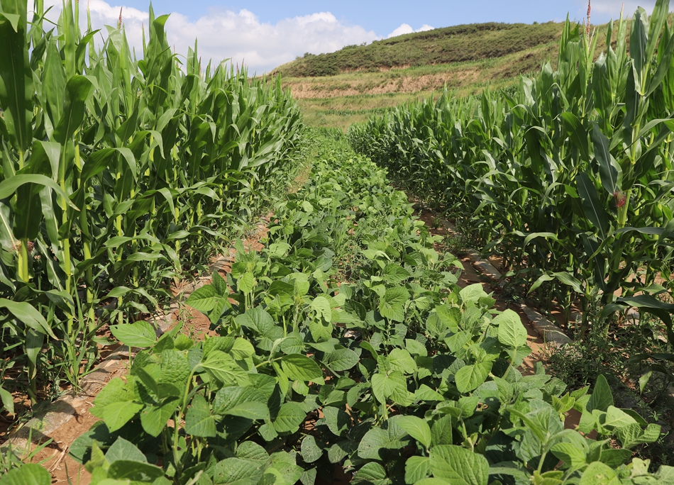 在黃門鎮(zhèn)樊家村蕎麥種植基地,大片的蕎麥苗隨風(fēng)起伏,粉白色的蕎麥花散發(fā)出淡淡清香,一派豐收在望的喜人景象。馬什村北山玉米大豆復(fù)合種植點(diǎn),一排排玉米、一壟壟大豆整齊地帶狀排列,一高一低錯(cuò)落有致,長勢喜人,實(shí)現(xiàn)一地“雙種”,一地“雙收”。