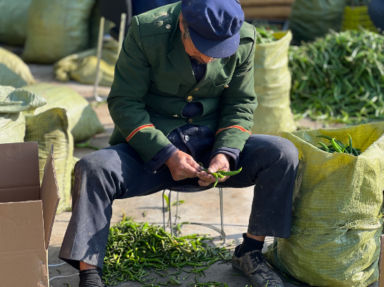 “在合作社干活一天能掙100多塊錢,在家門口能賺這么多,還能照顧家里老人小孩,真是日子越過越紅火,賺錢看家兩不誤!”正在挑揀辣椒的黃崖村村民王紅霞說道。