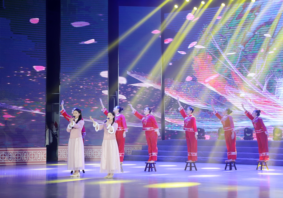晚會(huì)在開(kāi)場(chǎng)舞《龍騰鼓躍》激昂的旋律中拉開(kāi)序幕。歡快的鼓點(diǎn)奏響了春天的旋律,整齊的舞步舞出喜慶的氣息。《春山如黛水如藍(lán)》《回娘家》《花開(kāi)忘憂(yōu)》《追夢(mèng)人》《點(diǎn)亮新時(shí)代》等節(jié)目以美輪美奐的舞美效果,精湛的演繹將晚會(huì)氣氛推向了高潮。