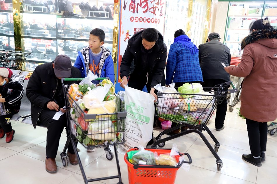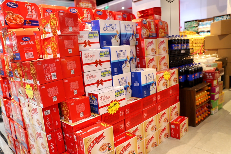 走進清水縣多家商場、超市,零食、飲料等春節(jié)常備商品攢成禮盒整齊擺放,蔬菜區(qū)新鮮蔬菜一應(yīng)俱全。貨架上,各類商品琳瑯滿目,數(shù)量充足,酒水飲料、糖果瓜子、糧油米面、風味美食等令人目不暇接,歡快的音樂循環(huán)播放,市民們?nèi)页鰟,推著購物車精心挑選年貨。