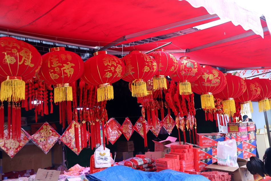 年貨一條街,大紅燈籠、中國結(jié)高高掛起,對聯(lián)、鞭炮相當暢銷,熙熙攘攘的集市上商戶們笑得開懷。“馬上過年了,我店里主要經(jīng)營的是燈籠、新年串串、彩燈等新年貨物,各種各樣的款式特別多,這幾天很多人都來購買!迸d強百貨老板時小強說。
