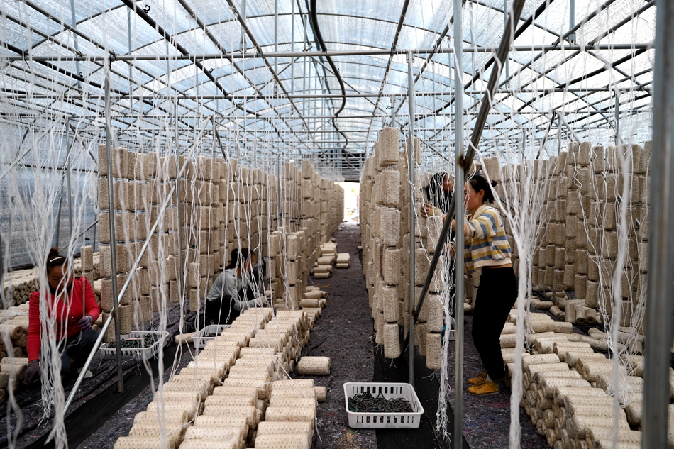 紅堡鎮(zhèn)崔劉村村民成秀萍邊掛菌棒邊說,“這個黑木耳大棚離我家特別近,早上送完孩子,做完家務我就過來開始掛菌棒,一天工作八九個小時,照顧了孩子和老人,還能掙點生活費補貼家用!