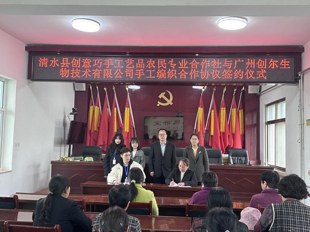 在隨后舉行的訂單協(xié)議簽約儀式上,土門鎮(zhèn)全面介紹了婦女手工編織品“炕頭經(jīng)濟”發(fā)展理念、“1+N”師傅帶徒培養(yǎng)模式、“電商+線下”銷售渠道等優(yōu)勢模塊,獲得考察團一致好評。雙方現(xiàn)場簽訂了供銷合作協(xié)議,計劃通過訂單銷售、市場推廣、技術(shù)支持與培訓(xùn)的方式,提升土門鎮(zhèn)巧手婦女手工編織工藝品市場影響力,并利用廣州創(chuàng)爾公司成熟的銷售網(wǎng)絡(luò)和市場營銷經(jīng)驗,擴大土門鎮(zhèn)手工編織工藝品銷售范圍,保障編織產(chǎn)品銷量穩(wěn)步上升。