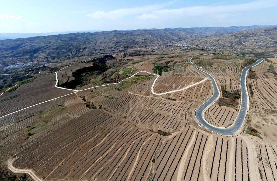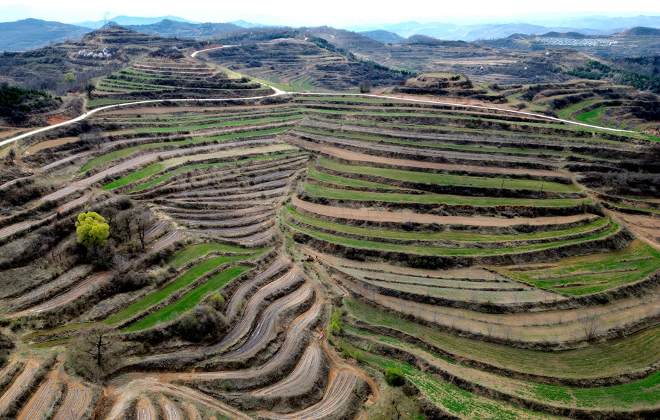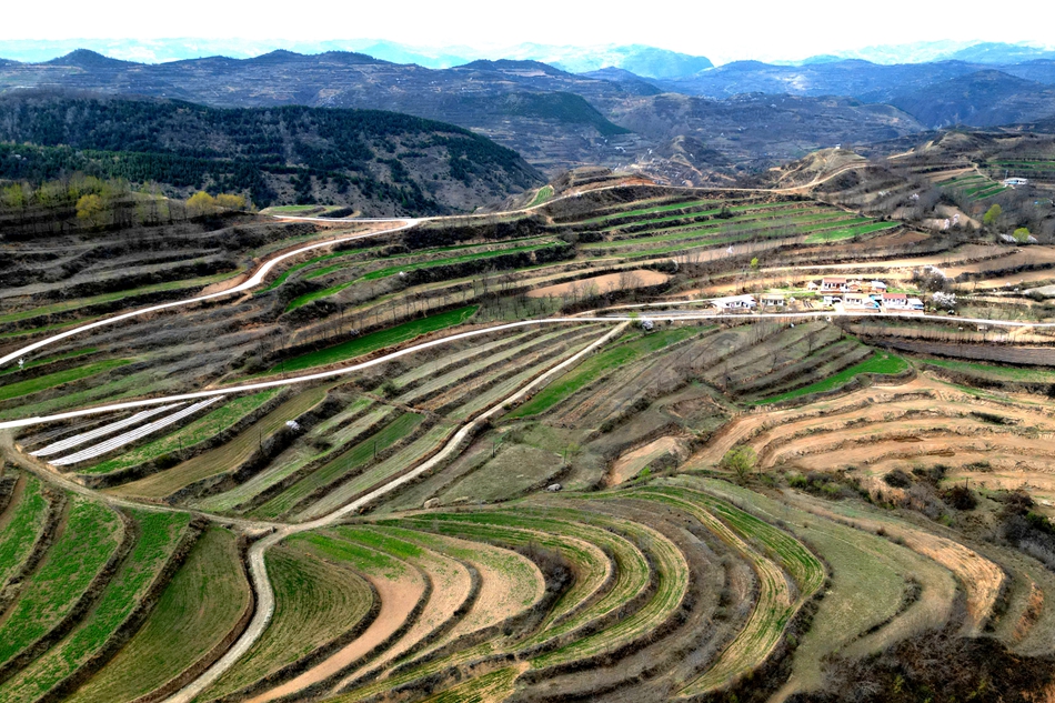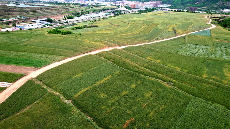 新城鄉(xiāng)四合村千畝小麥良種繁育基地,返青的麥苗正鉚足了勁生長,進(jìn)入了拔節(jié)期。放眼望去,一塊塊綠油油的梯田地層層疊疊,微風(fēng)吹來,綠浪翻滾,一派生機(jī)盎然的景象。在方灣村和李灣村,廣袤的田野里一道道鋪好的薄膜整整齊齊地蓋在地上,從空中俯瞰,陽光的照耀下,覆膜農(nóng)田銀光閃閃,呈現(xiàn)出一幅美麗的春耕畫卷。