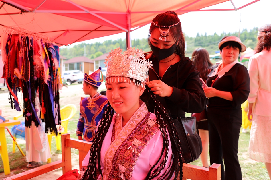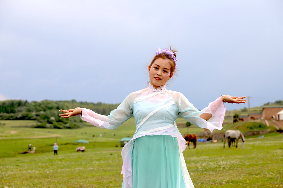 寬闊的草原、奔馳的駿馬,來往的游客,在非子牧場,受歡迎的不僅有燒烤啤酒、駿馬奔騰,還有民族服飾租賃。在小崖妹民族服飾租賃店,店長王秀芳正忙著給游客們選衣服、做造型。她說,“馮河草原周末人很多,每天妝造能做40余套,這邊風景優(yōu)美,比較涼爽,特別適合夏天游玩!