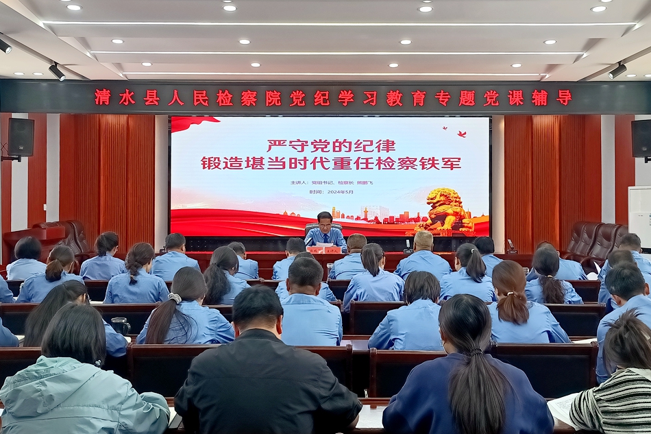 5月16日,清水縣人民檢察院黨組書記、檢察長(zhǎng)熊鵬飛聚焦“六大紀(jì)律”的基本內(nèi)涵、具體要求和檢察實(shí)踐三個(gè)方面講授專題黨課,內(nèi)容豐富、思想深刻的黨課讓干警們獲益匪淺,更加堅(jiān)定在今后的工作與生活中時(shí)刻牢記黨的紀(jì)律、嚴(yán)守黨的規(guī)矩,在推動(dòng)清水檢察工作高質(zhì)量發(fā)展上展現(xiàn)新作為、書寫新篇章的信心決心。