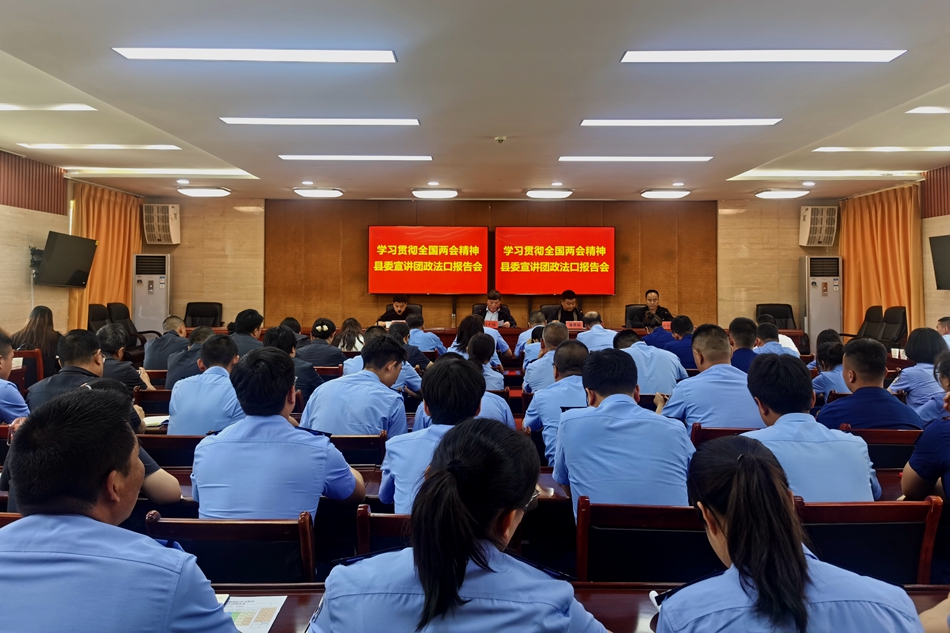 5月20日下午,學(xué)習(xí)貫徹全國(guó)兩會(huì)精神和黨紀(jì)學(xué)習(xí)教育縣委宣講團(tuán)政法口報(bào)告會(huì)舉行。縣委政法委、縣公安局、縣檢察院、縣法院、縣司法局、縣民政局、縣消防隊(duì)干警共計(jì)80余人參加報(bào)告會(huì)。
