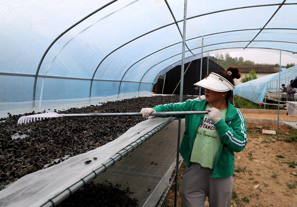 “進(jìn)入五月份,我們木耳園區(qū)正式進(jìn)入采摘期,采摘期能延續(xù)到七月份,園區(qū)每天有20名員工采摘,到七月份能采摘5-6茬木耳。每天鮮品采摘能達(dá)到6000斤左右,干品也能達(dá)到700多斤!笔秤镁a(chǎn)業(yè)園技術(shù)員劉樹利說。