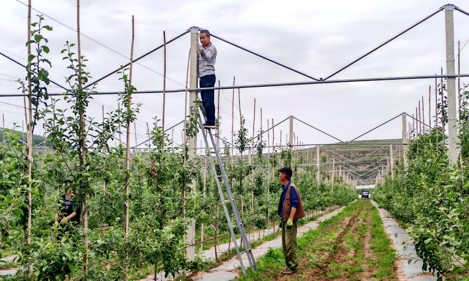 “我們合作社今年計(jì)劃搭建防雹網(wǎng)200畝,現(xiàn)在已完成70%,預(yù)計(jì)六月中旬全部搭建完畢。”金果果品種植農(nóng)民專業(yè)合作社技術(shù)員董彥龍說(shuō)。
