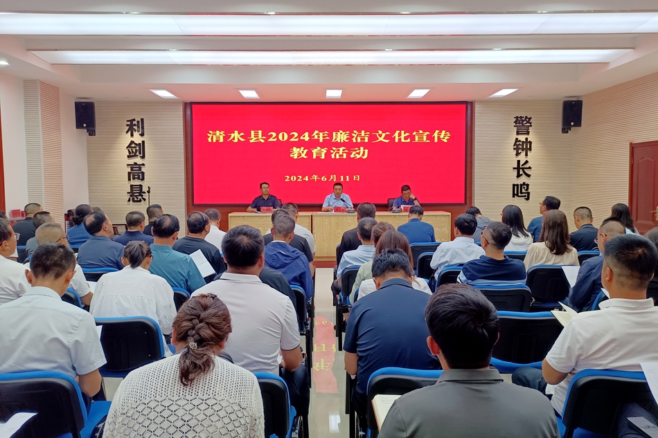 為深入學(xué)習(xí)貫徹習(xí)近平總書記關(guān)于黨的自我革命的重要思想,不斷推進(jìn)新時代廉潔文化建設(shè),引導(dǎo)全縣各級黨員干部自覺加強(qiáng)黨性修養(yǎng),筑牢思想道德防線,增強(qiáng)拒腐防變能力,提高廉潔從政的自律意識,營造干部清正、政府清廉、政治清明的廉潔政治生態(tài)。6月11日,清水縣開展以“弘揚廉潔文化·涵養(yǎng)時代新風(fēng)”為主題的廉潔文化宣傳教育活動。縣委常委、紀(jì)委書記、監(jiān)委主任馬滔參加活動并致辭。