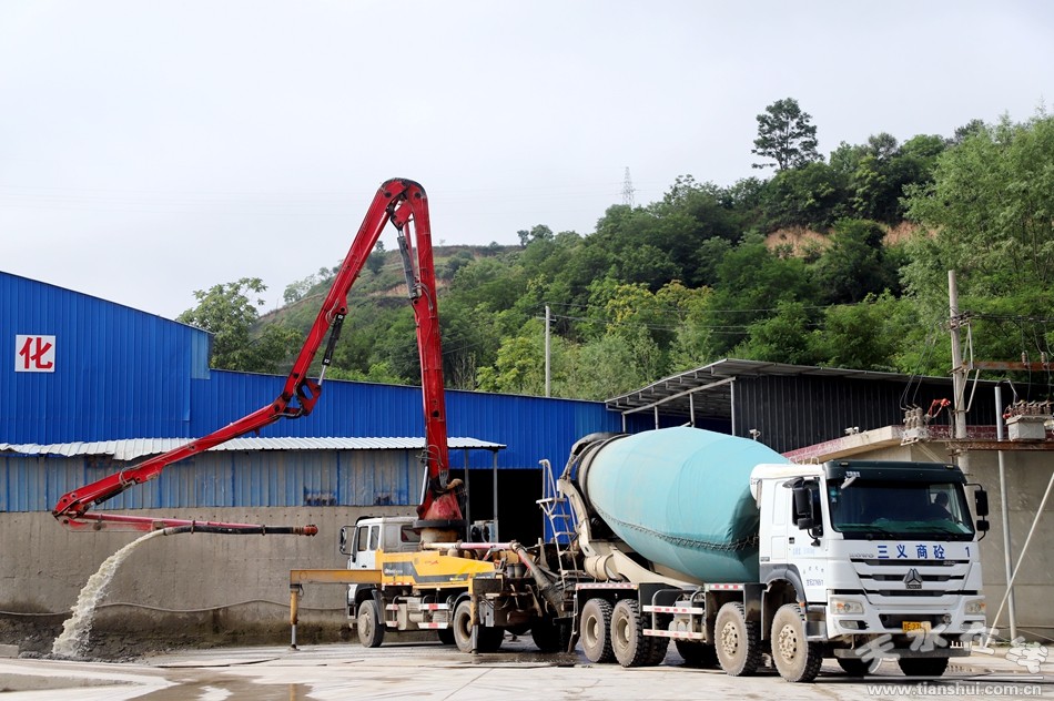 近日,來到天水三義混凝土有限公司,只見廠區(qū)內(nèi)數(shù)輛大型混凝土攪拌運輸車來來往往,正在源源不斷地生產(chǎn)運送混凝土。
