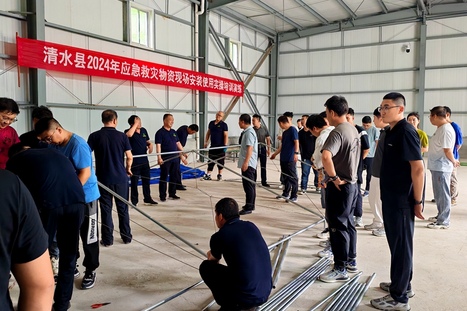 為進(jìn)一步提高清水縣應(yīng)急管理相關(guān)單位對(duì)突發(fā)性災(zāi)害事件的快速響應(yīng)能力,相關(guān)人員在突發(fā)事件發(fā)生時(shí)的應(yīng)急處理能力,保障在緊急情況下能夠高效、準(zhǔn)確地進(jìn)行救災(zāi)物資的現(xiàn)場(chǎng)安裝與使用,最大限度地減少災(zāi)害損失。7月23日,清水縣開展應(yīng)急救災(zāi)物資現(xiàn)場(chǎng)安裝使用實(shí)操培訓(xùn)演練。