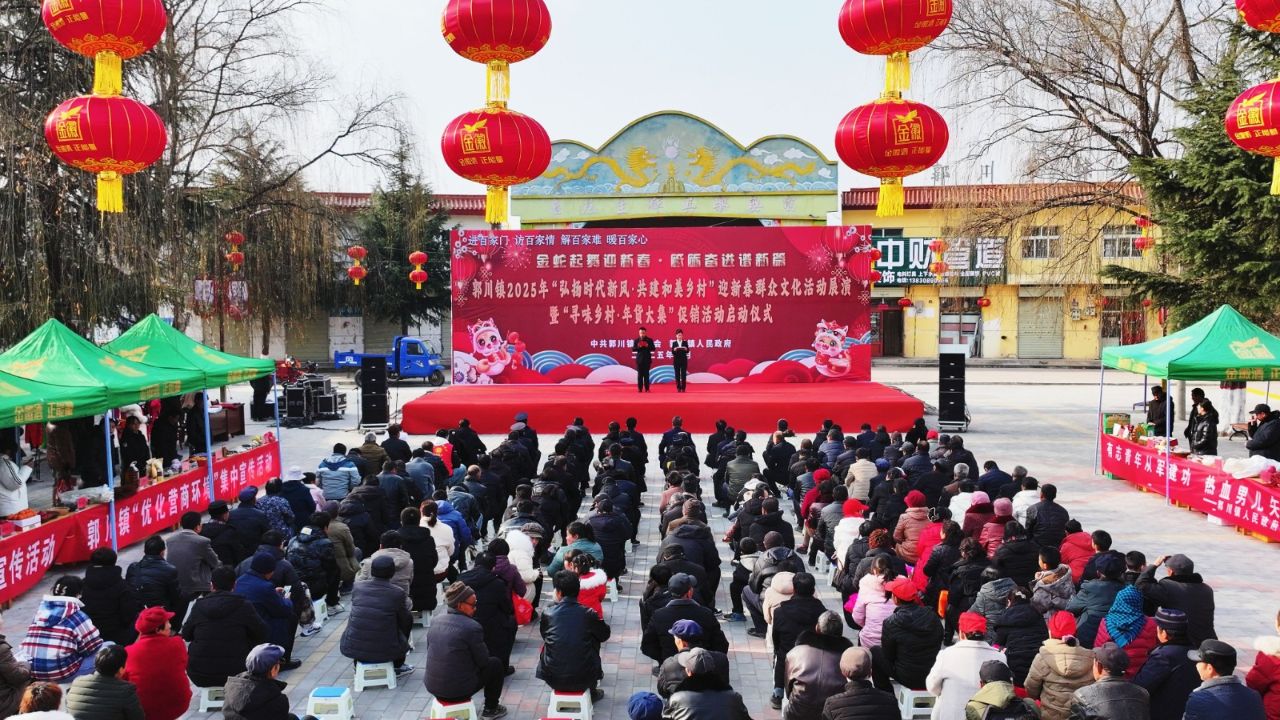 金蛇獻瑞辭舊歲,萬象更新迎新春。為進一步豐富群眾精神文化生活,切實營造喜慶溫馨的節(jié)日氛圍,1月21日上午,郭川鎮(zhèn)舉辦2025年“弘揚時代新風·共建和美鄉(xiāng)村”迎新春群眾文化活動展演暨“尋味鄉(xiāng)村·年貨大集”促銷活動,鎮(zhèn)黨政領導班子成員、全體鎮(zhèn)村干部、駐村幫扶工作隊員、各村群眾代表共計300余人參加,現(xiàn)場人潮涌動,熱鬧非凡。