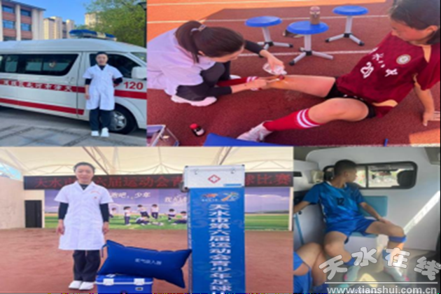 醫(yī)療保障應(yīng)急處置。楊春喜積極投身“天水市第六屆運動會青少年足球比賽”現(xiàn)場醫(yī)療保障工作。炎炎烈日下,每當(dāng)收到指令,她都立刻響應(yīng),拎起急救箱跑到傷員身邊,蹲下身子檢查傷勢、冰敷、固定,并安撫情緒。6場比賽下來,共處理了十多起傷情,還全程陪護(hù)、轉(zhuǎn)運一名骨裂傷員?粗约喊状蠊由系暮?jié)n、藥漬,她笑笑說:“我們迅速處置顯擔(dān)當(dāng),是綠茵場上的守護(hù)者!”
