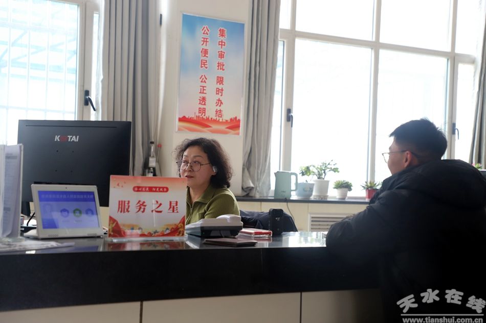清水縣政務(wù)服務(wù)中心副主任馬寧說(shuō):“在隊(duì)伍建設(shè)上,通過(guò)常態(tài)化業(yè)務(wù)培訓(xùn)、禮儀教育及‘黨員示范窗口’創(chuàng)建,夯實(shí)服務(wù)根基;改革攻堅(jiān)中,聚焦‘高效辦成一件事’,推行‘一窗受理、并聯(lián)審批’,實(shí)現(xiàn)企業(yè)開(kāi)辦、不動(dòng)產(chǎn)登記等涉企事項(xiàng)全程網(wǎng)辦率100%,以‘硬作風(fēng)’跑出‘加速度’,變‘坐等上門’為‘主動(dòng)問(wèn)需’,通過(guò)‘一把手坐窗口、走流程’強(qiáng)化監(jiān)督,群眾與企業(yè)滿意度持續(xù)高位運(yùn)行,讓‘小窗口’釋放‘大效能’!