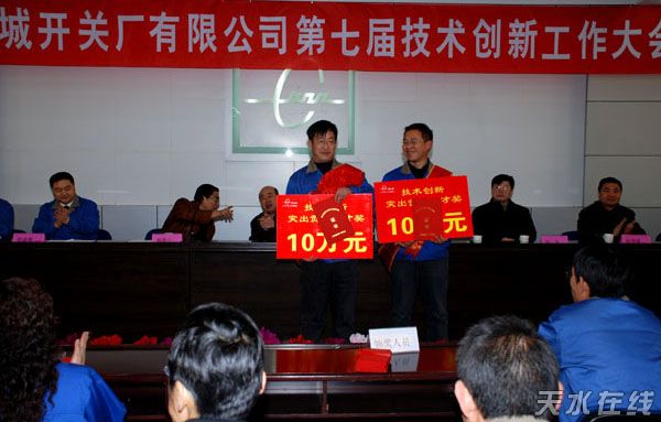 12月26日,天水長城開關(guān)有限公司像過節(jié)一樣,洋溢著喜慶的氣氛。110名獲獎的科技創(chuàng)新代表胸戴大紅花,喜氣洋洋步入會場,迎來了4年一度的技術(shù)創(chuàng)新大會。這個一向重視科研開發(fā)的公司,今天拿出100萬元獎勵為公司作出突出貢獻的科技功臣。