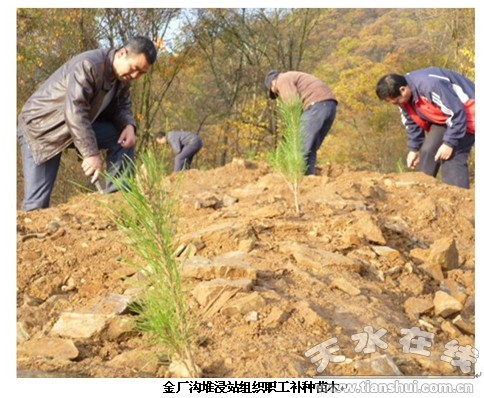 兩當(dāng)縣金廠溝堆浸實(shí)驗(yàn)站堅(jiān)持在保護(hù)中開(kāi)發(fā),在開(kāi)發(fā)中保護(hù)的原則,邊開(kāi)采邊治理,今年安排專(zhuān)項(xiàng)資金,加大復(fù)墾還綠力度,利用工作間隙組織職工補(bǔ)種苗木。胡副隊(duì)長(zhǎng)一行到達(dá)那里時(shí),試驗(yàn)站干部職工正忙著補(bǔ)栽苗木。胡副隊(duì)長(zhǎng)對(duì)站領(lǐng)導(dǎo)班子能正確處理礦產(chǎn)資源開(kāi)發(fā)利用與自然生態(tài)環(huán)境保護(hù)工作予以了肯定,同時(shí)強(qiáng)調(diào)實(shí)驗(yàn)站要加強(qiáng)危化物品的管理,及時(shí)監(jiān)測(cè)尾水,確保水質(zhì)達(dá)標(biāo)排放。