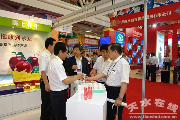 天水長(zhǎng)城果汁集團(tuán)有限公司參加活動(dòng)并布展;顒(dòng)期間,展示了“隴上花牛蘋果汁”、濃縮蘋果汁、花牛蘋果、富士蘋果、“西爾瑞”螺旋藻、果渣飼料等五大類產(chǎn)品。