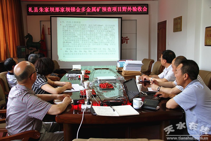 驗收組專家一行五人認真查閱相關原始地質資料后,在王正堂大隊長的陪同下赴野外現(xiàn)場檢查地質工作完成情況。專家組對甘肅省禮縣那家壩金銻多金屬礦預查、甘肅省禮縣朱家壩金銻多金屬礦預查兩個項目進行了驗收并予以通過,對康縣曹家埡銅金多金屬礦預查項目進行了野外檢查。