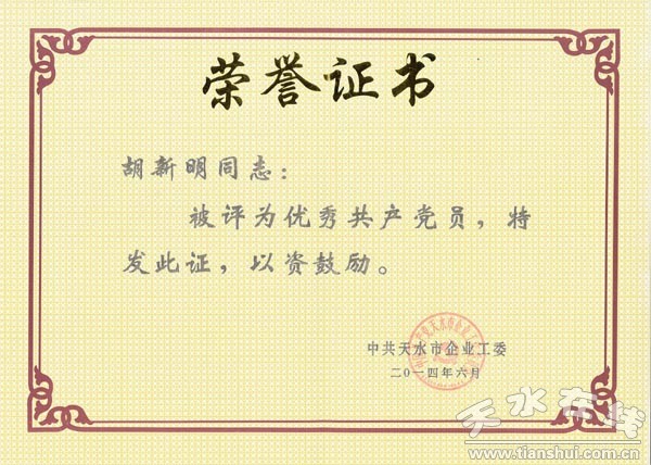 6月26日,天水市企業(yè)工委紀(jì)念建黨93周年暨表彰大會(huì)在天水迎賓館隆重召開(kāi)。會(huì)議回顧黨的光輝歷史,表彰獎(jiǎng)勵(lì)先進(jìn),進(jìn)一步激勵(lì)全市企業(yè)黨組織和廣大黨員牢記黨的根本宗旨、發(fā)揚(yáng)黨的優(yōu)良傳統(tǒng),在深入實(shí)施“工業(yè)強(qiáng)市”戰(zhàn)略、推動(dòng)全市經(jīng)濟(jì)社會(huì)跨越式科學(xué)發(fā)展偉大實(shí)踐中更好地發(fā)揮戰(zhàn)斗堡壘和先鋒模范作用。市委常委、政法委書(shū)記趙衛(wèi)東,市人大常委會(huì)副主任安永等領(lǐng)導(dǎo)出席會(huì)議。