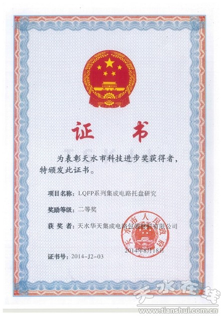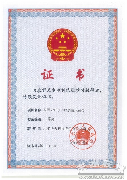 會上,對榮獲2014年度國家科技獎、省科學(xué)技術(shù)獎、天水市科技進(jìn)步獎的單位和科技工作者進(jìn)行了表彰。市委書記王銳為天水華天電子集團(tuán)頒發(fā)“甘肅省企業(yè)技術(shù)創(chuàng)新示范獎”;科技公司的“多圈V/UQFN封裝技術(shù)研發(fā)”項目和七四九公司的“YH420型交流電源變換器的研制”項目獲得天水市科技進(jìn)步一等獎;包裝公司的“LQFP系列集成電路托盤研究”項目獲得天水市科技進(jìn)步二等獎。