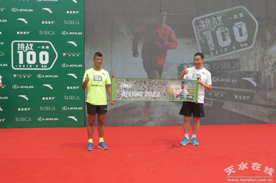 7月10日,中國(guó)極限馬拉松選手陳盆濱跑步抵達(dá)北京五棵松體育館,完成了備受矚目的“挑戰(zhàn)100”100天100個(gè)馬拉松活動(dòng),全程共計(jì)4219.54公里。4月2日從廣州出發(fā),歷經(jīng)100天跨越9省32個(gè)城市,在張朝陽(yáng)、韓庚、馮唐、毛大慶等一眾跑步愛(ài)好者的陪伴下,陳盆濱完成了從南到北的百日百馬征程,締造了一個(gè)人連續(xù)一百天跑一百個(gè)馬拉松的世界長(zhǎng)跑奇跡。北京奧促會(huì)副主席出席陳盆濱100個(gè)馬拉松終點(diǎn)慶祝儀式,為陳盆濱帶上項(xiàng)征奧運(yùn)的橄欖枝。據(jù)悉,陳盆濱本次也特別繞路到崇禮這個(gè)和北京一同申奧的城市,并和他的全程營(yíng)養(yǎng)支持伙伴安利紐崔萊一起沿路收集助力北京2022的申奧手勢(shì)。7月10日,陳盆濱將帶著他收集的對(duì)奧運(yùn)的支持,一路跑進(jìn)北京申奧收官之戰(zhàn)—冰上雅姿花樣滑冰表演現(xiàn)場(chǎng),希望能夠?yàn)樯贽k北京2022年冬奧會(huì)送上美好祝福。