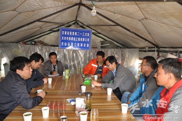 項(xiàng)目開(kāi)工前后,甘肅省國(guó)防科工局核產(chǎn)業(yè)處馬慶偉副處長(zhǎng),核工業(yè)北京地質(zhì)研究院環(huán)境工程技術(shù)處宗自華副處長(zhǎng)、環(huán)境工程所趙宏剛博士等專家。核地質(zhì)二一三大隊(duì)王正堂大隊(duì)長(zhǎng)、張志龍科長(zhǎng)、鉆探公司負(fù)責(zé)人分別在核地研院項(xiàng)目部和我隊(duì)北山鉆探工程項(xiàng)目部召開(kāi)了兩次座談會(huì)。環(huán)境工程技術(shù)處宗自華副處長(zhǎng)全面介紹了地下實(shí)驗(yàn)室候選場(chǎng)址自1985年以來(lái)的科研成果和目前的進(jìn)展情況,以及今后研究方向和工作設(shè)想。王正堂大隊(duì)長(zhǎng)講話指出:該項(xiàng)目是國(guó)家軍工重點(diǎn)項(xiàng)目,是鉆探公司繼第一批鉆探施工項(xiàng)目全面完成后的第二批深部斜孔鉆探施工項(xiàng)目,參加項(xiàng)目施工的所有人員要有強(qiáng)烈的榮譽(yù)感和使命感,要大力發(fā)揚(yáng)核工業(yè)的優(yōu)良傳統(tǒng)作風(fēng),一定要認(rèn)真總結(jié)經(jīng)驗(yàn)教訓(xùn),精細(xì)化管理,做好組織協(xié)調(diào),貫徹落實(shí)三體系要求,嚴(yán)格執(zhí)行實(shí)施方案;增強(qiáng)責(zé)任心,加強(qiáng)技術(shù)力量,抓關(guān)鍵,抓要害,攻堅(jiān)克難,發(fā)揚(yáng)“工匠精神”,充分調(diào)動(dòng)職工的積極性和創(chuàng)造性,使鉆探技術(shù)上一個(gè)新的臺(tái)階。