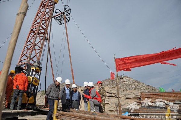 項(xiàng)目開(kāi)工儀式由核工業(yè)北京地質(zhì)研究院環(huán)境工程所趙宏剛博士主持,甘肅省國(guó)防科工局核產(chǎn)業(yè)處馬青偉副處長(zhǎng),核工業(yè)北京地質(zhì)研究院環(huán)境工程技術(shù)處宗自華副處長(zhǎng)到場(chǎng)祝賀并提出工作要求:一是嚴(yán)格按項(xiàng)目組技術(shù)要求和實(shí)施方案施工;二是狠抓技術(shù)質(zhì)量和進(jìn)度,確保后續(xù)現(xiàn)場(chǎng)實(shí)驗(yàn)要求;三是抓好安全生產(chǎn)和環(huán)境保護(hù)。王正堂大隊(duì)長(zhǎng)在講話中表示:非常感謝北京核地質(zhì)研究院及甘肅省國(guó)防科工局對(duì)我們工作的支持和幫助,第二批5個(gè)600米斜孔鉆探工程施工項(xiàng)目的中標(biāo)并實(shí)施,充分體現(xiàn)了核工業(yè)北京地質(zhì)研究院對(duì)我隊(duì)的信任及對(duì)鉆探公司技術(shù)能力的認(rèn)可,鉆探公司一定要精心組織、科學(xué)管理、嚴(yán)格執(zhí)行項(xiàng)目組的技術(shù)要求和實(shí)施方案,在確保質(zhì)量、安全、環(huán)境等相關(guān)要求的前提下,加快施工進(jìn)度,提高生產(chǎn)效率,嚴(yán)格成本控制,按時(shí)間節(jié)點(diǎn)全面完成工作任務(wù)。