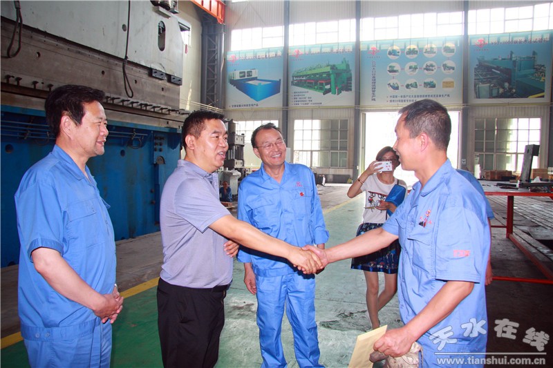 2017年6月30日,天水市企業(yè)工委副書記曹秀明率綜合辦公室人員一行深入到天水鍛壓機床集團有限公司慰問了困難黨員張小軍、趙康敏,并為他們各發(fā)放了現(xiàn)金1000元。在七一前夕,天水市企業(yè)工委分組對系統(tǒng)內(nèi)20戶企業(yè)的優(yōu)秀黨員、老黨員、困難黨員進行了慰問,通過慰問把黨的關(guān)懷和溫暖送到了企業(yè)和黨員。