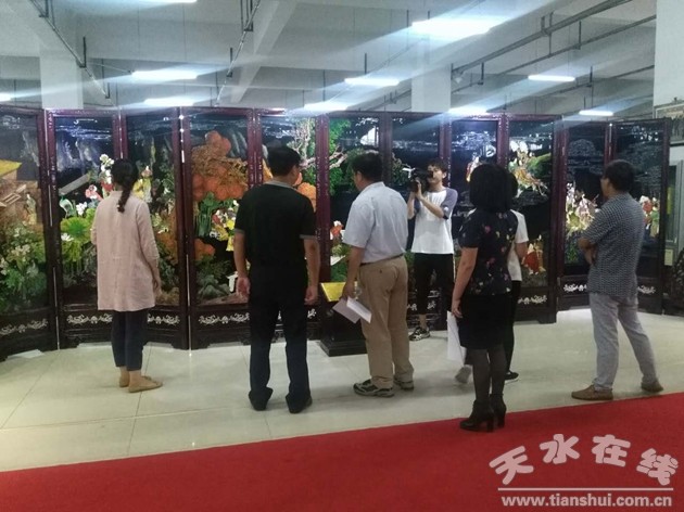 2017年8月17日,甘肅省文化廳副巡視員王春生、省委宣傳部經(jīng)管中心主任姚怡明、省文化廳文化產(chǎn)業(yè)處處長(zhǎng)魏亞峰、省委宣傳部發(fā)改處主任科員張海峰蒞臨天水飛天雕漆公司、66文創(chuàng)園考察調(diào)研,天水市文化和旅游局局長(zhǎng)仙松濤、市委宣傳部副部長(zhǎng)馬立新、市文化和旅游局副局長(zhǎng)李小敏、市華創(chuàng)辦專職副主任孫超陪同調(diào)研。