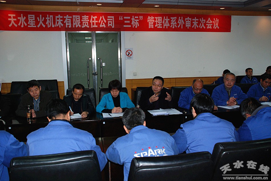 張建民代表審核組在會(huì)上對(duì)為期三天的“三標(biāo)”管理體系審核情況進(jìn)行總結(jié),指出了存在的問(wèn)題,提出了改進(jìn)意見(jiàn)和建議,宣布審核結(jié)論。張建民說(shuō),通過(guò)三天的審核,我們深切感受到天水星火目前雖然面臨很多困難,但管理團(tuán)隊(duì)仍然堅(jiān)持不懈,千方百計(jì)進(jìn)行破解。面對(duì)困難,2018年,企業(yè)在環(huán)保、職業(yè)健康安全方面投入一定資金,進(jìn)行了廢水廢氣、廠(場(chǎng))界噪聲及作業(yè)現(xiàn)場(chǎng)職業(yè)病危害因素檢測(cè),重新編制應(yīng)急預(yù)案并通過(guò)了專家組的評(píng)審。這些足以說(shuō)明,星火機(jī)床是一個(gè)盡職盡責(zé)的企業(yè),是難能可貴的。他針對(duì)審核中發(fā)現(xiàn)的問(wèn)題,向公司提出了完善細(xì)化目標(biāo)管理、加強(qiáng)質(zhì)量風(fēng)險(xiǎn)管控、完善管理流程、做好職業(yè)健康安全管理體系合規(guī)性評(píng)價(jià)等建議,希望公司廣大干部職工在班子的帶領(lǐng)下盡職盡責(zé),立即行動(dòng),擼起袖子加油干,破解企業(yè)目前面臨的難題,真正向管理要效益,祝愿天水星火明天更美好。